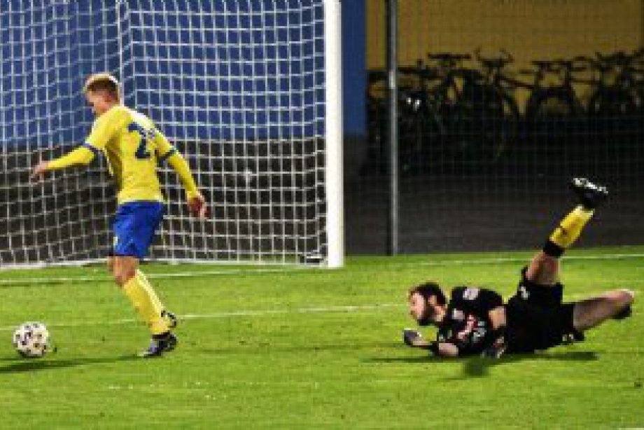 Gólu se diváci dočkali ve 34. minutě, kdy po centru zprava Pineau zblízka brankáře Grégra nepřekonal, podařilo se mu ale posunout míč na zcela volného Štěpána Koreše, a proti jeho dorážce do odkryté brány neměl gólman hostů šanci zasáhnout.