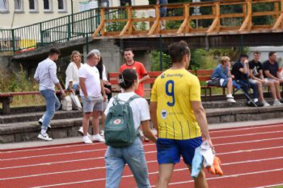 Posila do útoku se prosadila podruhé osm minut před pauzou. Za vápnem mu dali krumlovští zadáci dostatek času Arzbergerovi zacílit a za ranou do šibenice se brankář Beránek ani neotočil. Následně musel pro zranění střídat stoper Běloušek a do hry naskočil benjamínek Tlapa.